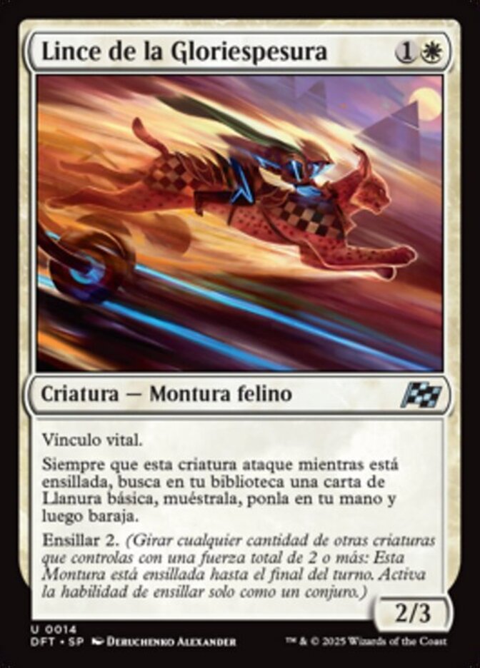 | Rules | Lifelink Whenever this creature attacks while saddled, search your library for a basic Plains card, reveal it, put it into your hand, then shuffle. Saddle 2 (Tap any number of other creatures you control with total power 2 or more: This Mount becomes saddled until end of turn. Saddle only as a sorcery.) |