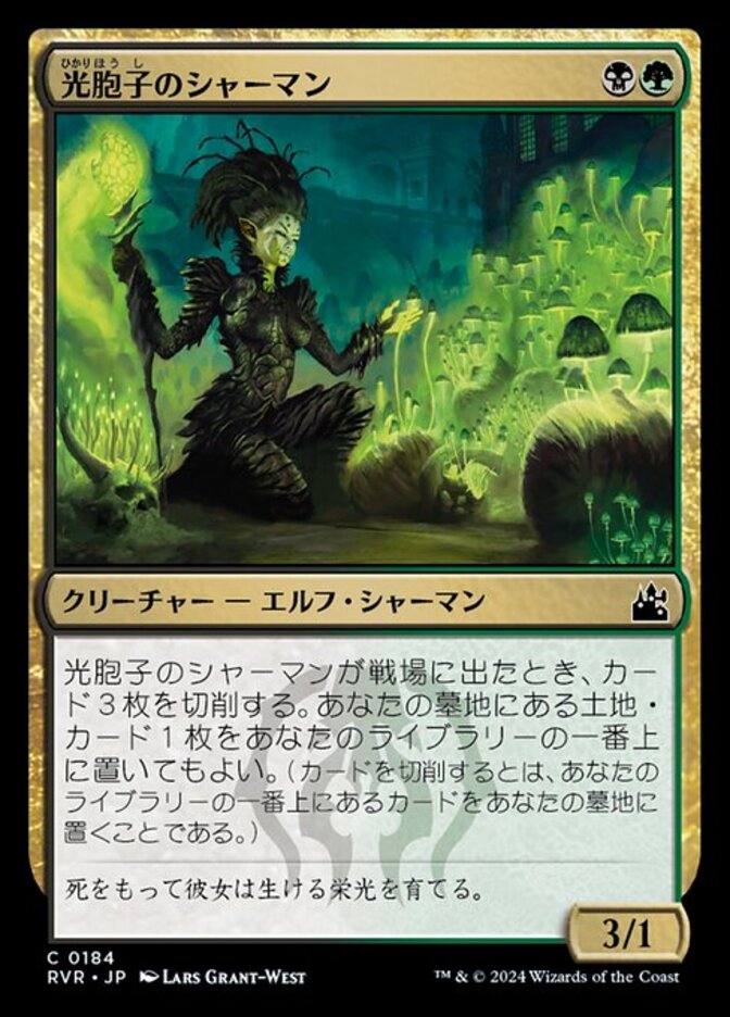 | Rules | When Glowspore Shaman enters the battlefield, mill three cards. You may put a land card from your graveyard on top of your library. |