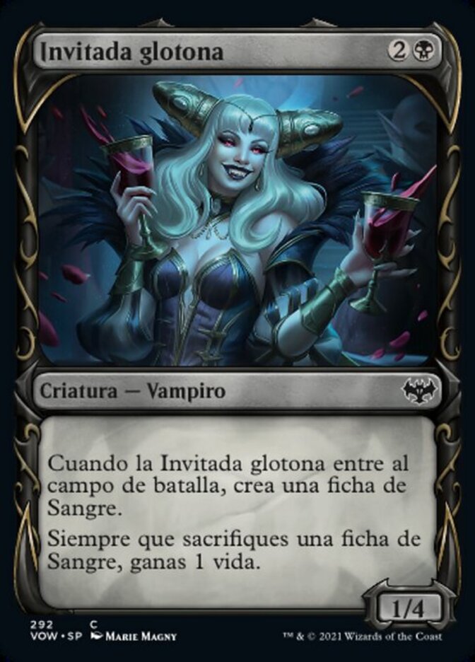 | Rules | When Gluttonous Guest enters the battlefield, create a Blood token. (It's an artifact with ", , Discard a card, Sacrifice this artifact: Draw a card.") Whenever you sacrifice a Blood token, you gain 1 life. |