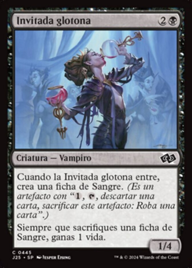 | Rules | When Gluttonous Guest enters the battlefield, create a Blood token. (It's an artifact with ", , Discard a card, Sacrifice this artifact: Draw a card.") Whenever you sacrifice a Blood token, you gain 1 life. |
