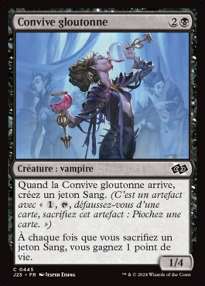 | Rules | When Gluttonous Guest enters the battlefield, create a Blood token. (It's an artifact with ", , Discard a card, Sacrifice this artifact: Draw a card.") Whenever you sacrifice a Blood token, you gain 1 life. |