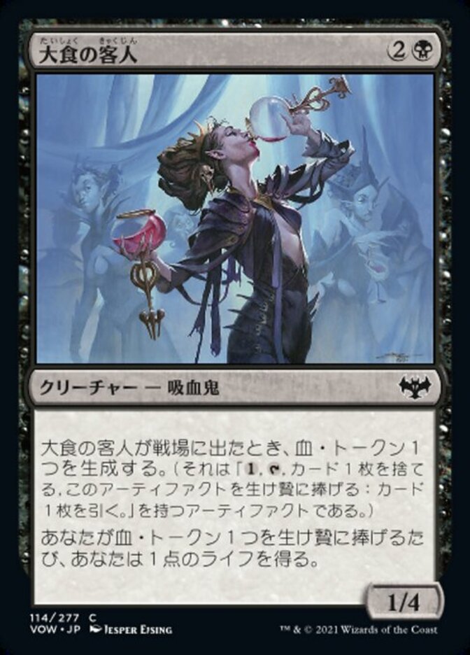 | Rules | When Gluttonous Guest enters the battlefield, create a Blood token. (It's an artifact with ", , Discard a card, Sacrifice this artifact: Draw a card.") Whenever you sacrifice a Blood token, you gain 1 life. |