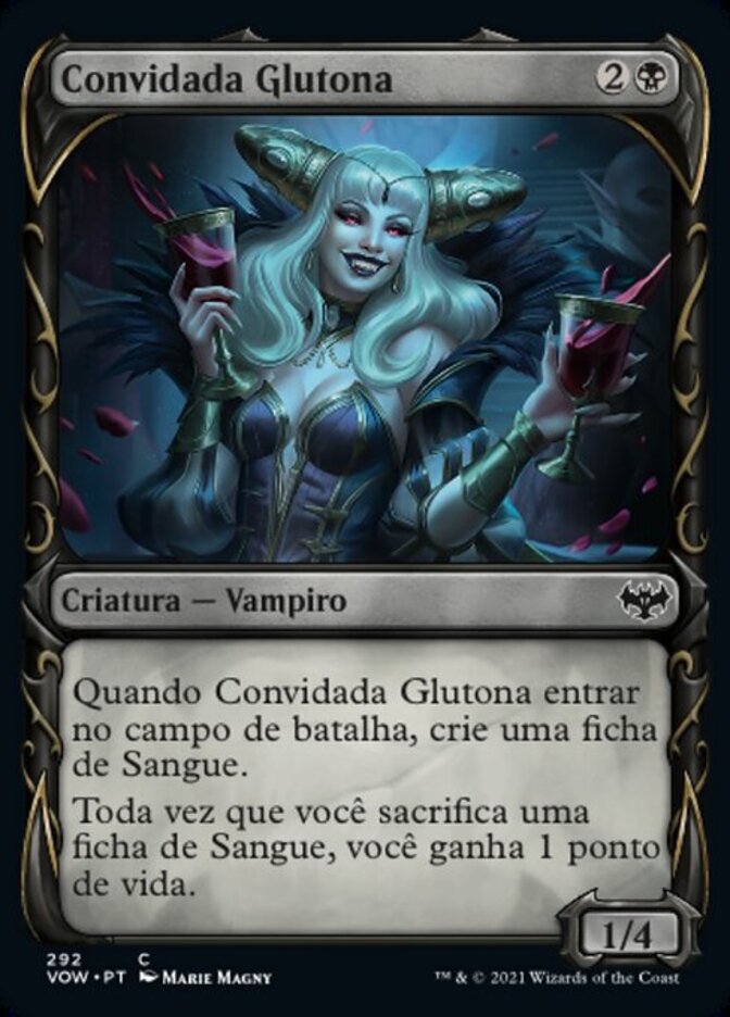 | Rules | When Gluttonous Guest enters the battlefield, create a Blood token. (It's an artifact with ", , Discard a card, Sacrifice this artifact: Draw a card.") Whenever you sacrifice a Blood token, you gain 1 life. |