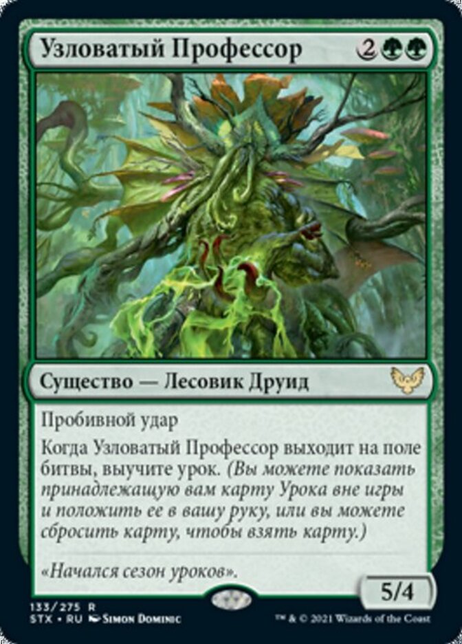 | Rules | Trample When Gnarled Professor enters the battlefield, learn. (You may reveal a Lesson card you own from outside the game and put it into your hand, or discard a card to draw a card.) |