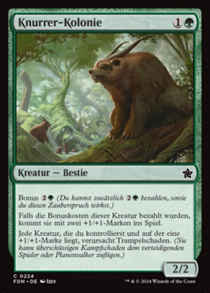 | Rules | Kicker (You may pay an additional as you cast this spell.) If Gnarlid Colony was kicked, it enters the battlefield with two +1/+1 counters on it. Each creature you control with a +1/+1 counter on it has trample. |