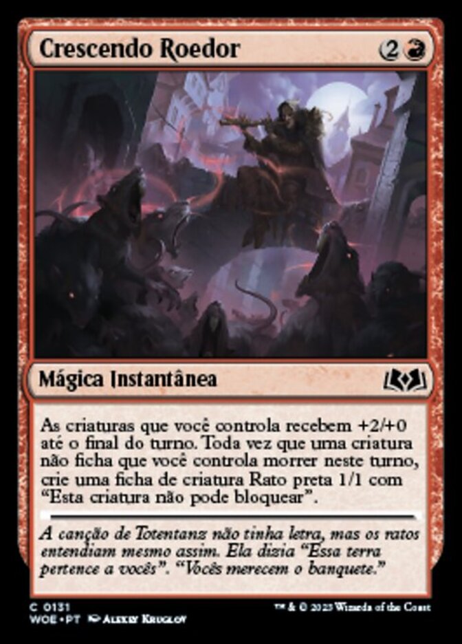 | Rules | Creatures you control get +2/+0 until end of turn. Whenever a nontoken creature you control dies this turn, create a 1/1 black Rat creature token with "This creature can't block." |