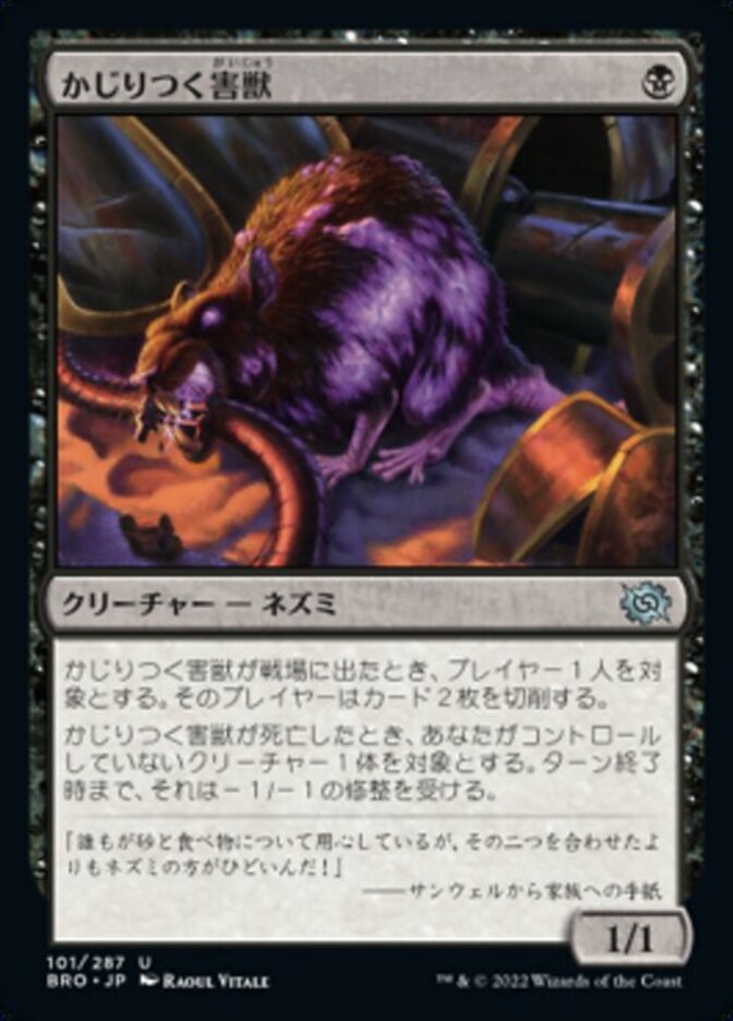 | Rules | When Gnawing Vermin enters the battlefield, target player mills two cards. When Gnawing Vermin dies, target creature you don't control gets -1/-1 until end of turn. |