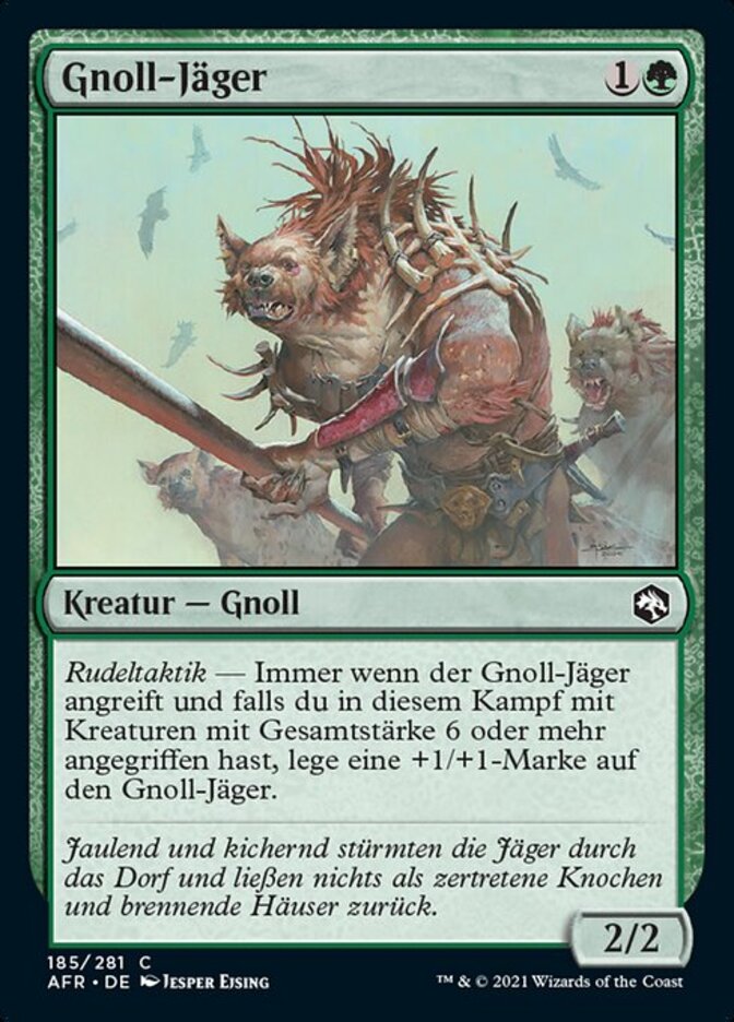| Rules | Pack tactics — Whenever Gnoll Hunter attacks, if you attacked with creatures with total power 6 or greater this combat, put a +1/+1 counter on Gnoll Hunter. |