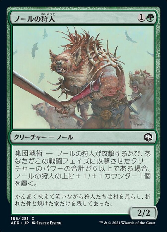 | Rules | Pack tactics — Whenever Gnoll Hunter attacks, if you attacked with creatures with total power 6 or greater this combat, put a +1/+1 counter on Gnoll Hunter. |