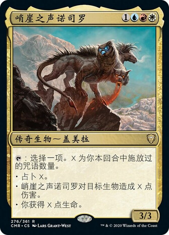 | Rules | : Choose one. X is the number of spells you've cast this turn. • Scry X. • Gnostro, Voice of the Crags deals X damage to target creature. • You gain X life. |