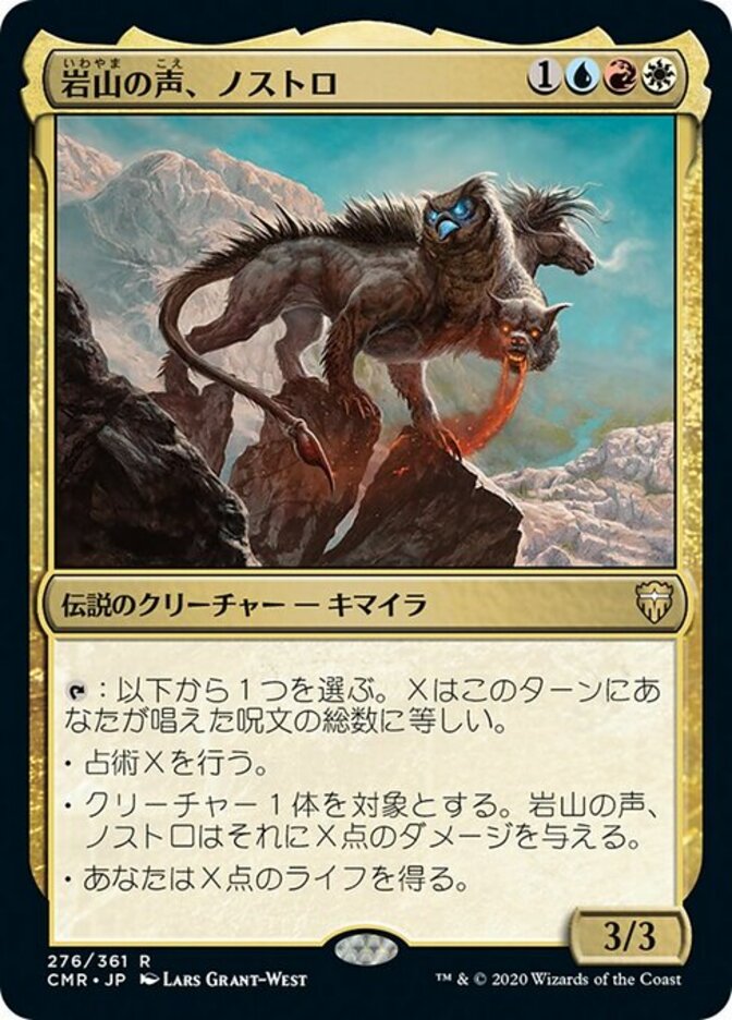 | Rules | : Choose one. X is the number of spells you've cast this turn. • Scry X. • Gnostro, Voice of the Crags deals X damage to target creature. • You gain X life. |