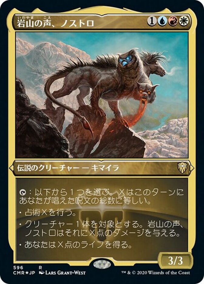 | Rules | : Choose one. X is the number of spells you've cast this turn. • Scry X. • Gnostro, Voice of the Crags deals X damage to target creature. • You gain X life. |