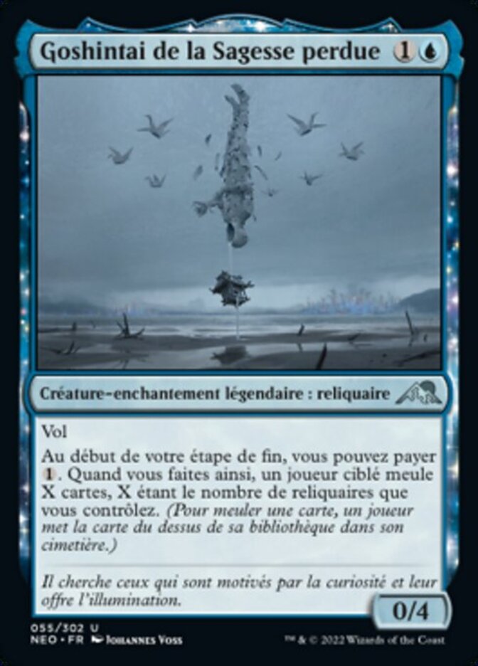 | Rules | Flying At the beginning of your end step, you may pay . When you do, target player mills X cards, where X is the number of Shrines you control. (To mill a card, a player puts the top card of their library into their graveyard.) |