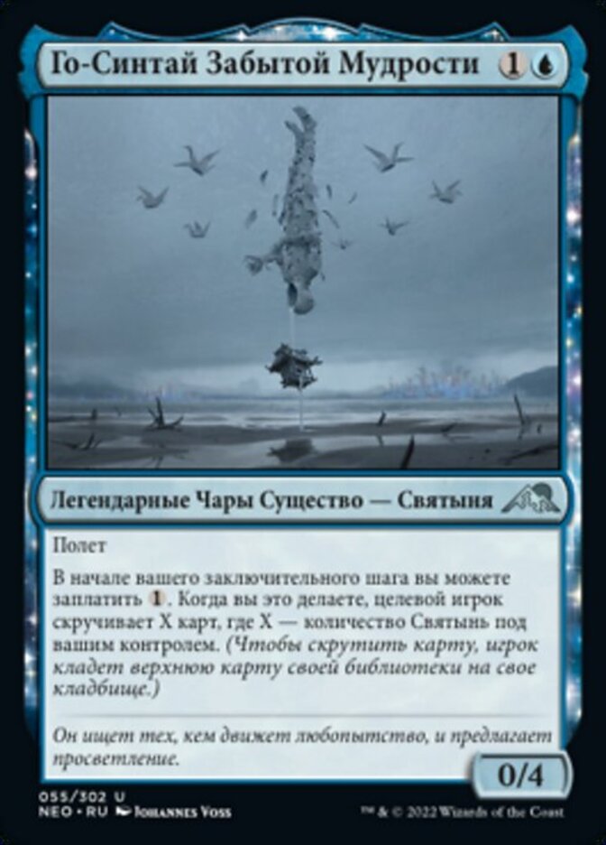 | Rules | Flying At the beginning of your end step, you may pay . When you do, target player mills X cards, where X is the number of Shrines you control. (To mill a card, a player puts the top card of their library into their graveyard.) |