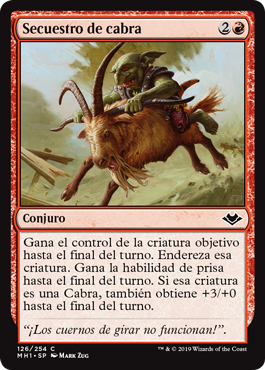 | Rules | Gain control of target creature until end of turn. Untap that creature. It gains haste until end of turn. If that creature is a Goat, it also gets +3/+0 until end of turn. |