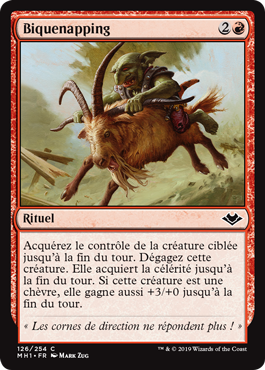| Rules | Gain control of target creature until end of turn. Untap that creature. It gains haste until end of turn. If that creature is a Goat, it also gets +3/+0 until end of turn. |