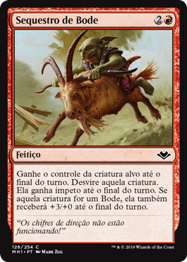 | Rules | Gain control of target creature until end of turn. Untap that creature. It gains haste until end of turn. If that creature is a Goat, it also gets +3/+0 until end of turn. |
