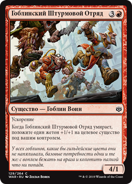 | Rules | Haste When Goblin Assault Team dies, put a +1/+1 counter on target creature you control. |