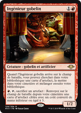 | Rules | When Goblin Engineer enters the battlefield, you may search your library for an artifact card, put it into your graveyard, then shuffle. , , Sacrifice an artifact: Return target artifact card with mana value 3 or less from your graveyard to the battlefield. |