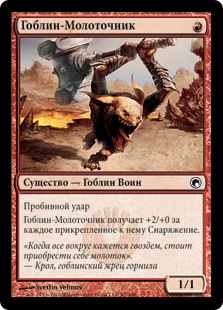 | Rules | Trample Goblin Gaveleer gets +2/+0 for each Equipment attached to it. |
