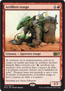 | Rules | At the beginning of your upkeep, create a colorless artifact token named Land Mine with ", Sacrifice this artifact: This artifact deals 2 damage to target attacking creature without flying." Then flip a coin. If you lose the flip, Goblin Kaboomist deals 2 damage to itself. |