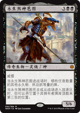 | Rules | Menace When God-Eternal Bontu enters the battlefield, sacrifice any number of other permanents, then draw that many cards. When God-Eternal Bontu dies or is put into exile from the battlefield, you may put it into its owner's library third from the top. |