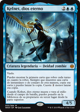 | Rules | Flying You may reveal the first card you draw each turn as you draw it. Whenever you reveal an instant or sorcery card this way, copy that card and you may cast the copy. That copy costs less to cast. When God-Eternal Kefnet dies or is put into exile from the battlefield, you may put it into its owner's library third from the top. |