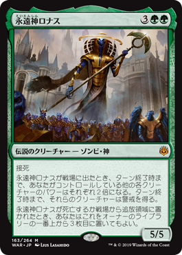 | Rules | Deathtouch When God-Eternal Rhonas enters the battlefield, double the power of each other creature you control until end of turn. Those creatures gain vigilance until end of turn. When God-Eternal Rhonas dies or is put into exile from the battlefield, you may put it into its owner's library third from the top. |