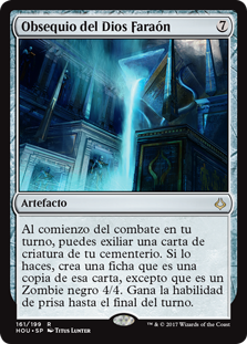 | Rules | At the beginning of combat on your turn, you may exile a creature card from your graveyard. If you do, create a token that's a copy of that card, except it's a 4/4 black Zombie. It gains haste until end of turn. |