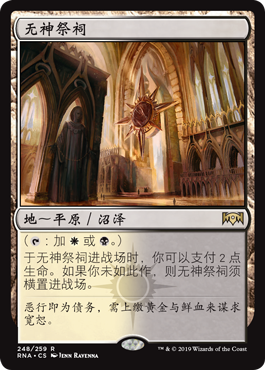 | Rules | (: Add or .) As Godless Shrine enters the battlefield, you may pay 2 life. If you don't, it enters the battlefield tapped. |