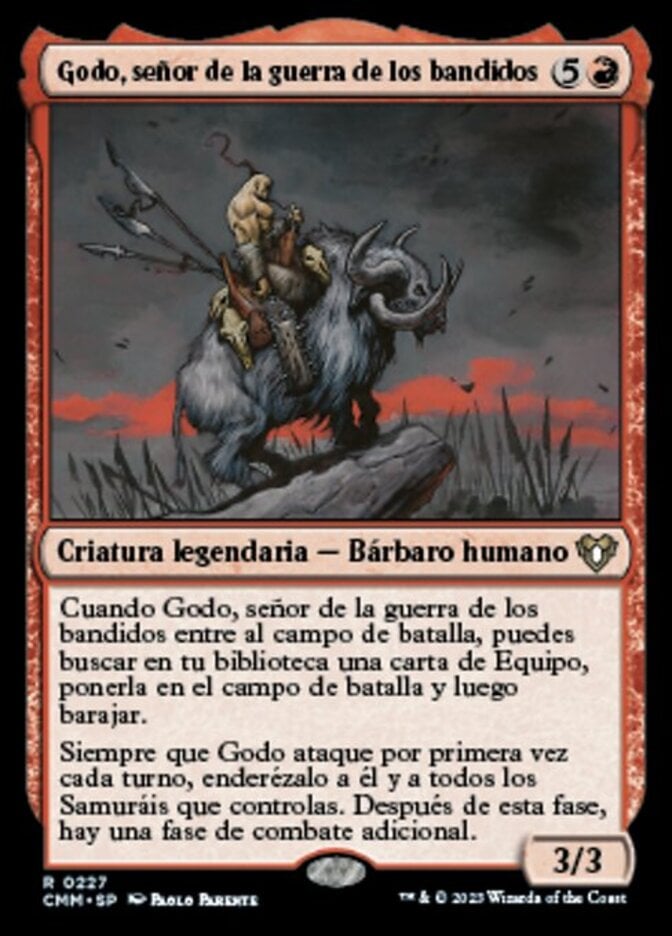| Rules | When Godo, Bandit Warlord enters the battlefield, you may search your library for an Equipment card, put it onto the battlefield, then shuffle. Whenever Godo attacks for the first time each turn, untap it and all Samurai you control. After this phase, there is an additional combat phase. |