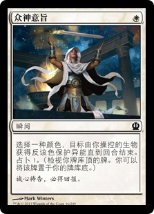 | Rules | Target creature you control gains protection from the color of your choice until end of turn. (It can't be blocked, targeted, dealt damage, enchanted, or equipped by anything of that color.) Scry 1. |