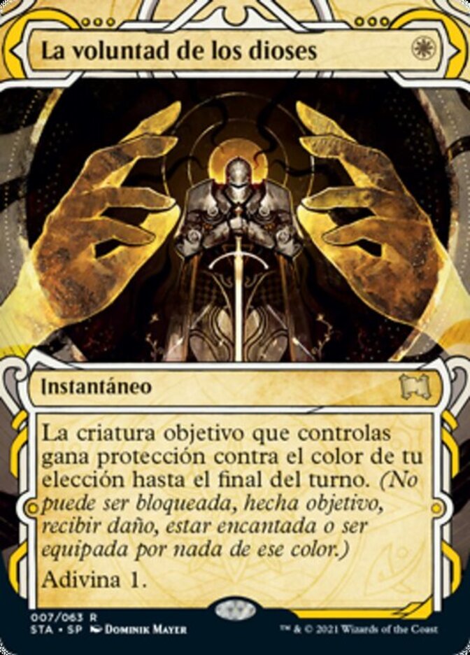 | Rules | Target creature you control gains protection from the color of your choice until end of turn. (It can't be blocked, targeted, dealt damage, enchanted, or equipped by anything of that color.) Scry 1. |