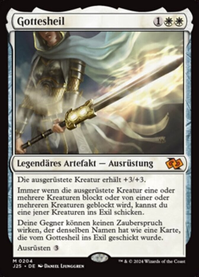 | Rules | Equipped creature gets +3/+3. Whenever equipped creature blocks or becomes blocked by one or more creatures, you may exile one of those creatures. Your opponents can't cast spells with the same name as a card exiled with Godsend. Equip |