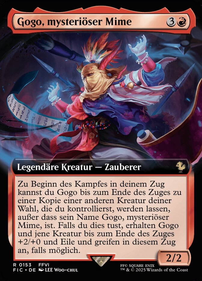 | Rules | At the beginning of combat on your turn, you may have Gogo become a copy of another target creature you control until end of turn, except its name is Gogo, Mysterious Mime. If you do, Gogo and that creature each get +2/+0 and gain haste until end of turn and attack this turn if able. |