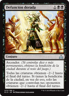 | Rules | Ascend (If you control ten or more permanents, you get the city's blessing for the rest of the game.) All creatures get -2/-2 until end of turn. If you have the city's blessing, instead only creatures your opponents control get -2/-2 until end of turn. |