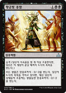 | Rules | Ascend (If you control ten or more permanents, you get the city's blessing for the rest of the game.) All creatures get -2/-2 until end of turn. If you have the city's blessing, instead only creatures your opponents control get -2/-2 until end of turn. |