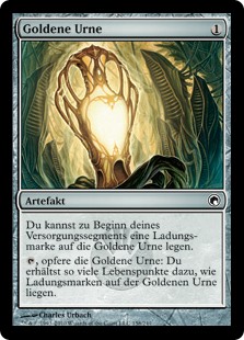 | Rules | At the beginning of your upkeep, you may put a charge counter on Golden Urn. , Sacrifice Golden Urn: You gain life equal to the number of charge counters on Golden Urn. |