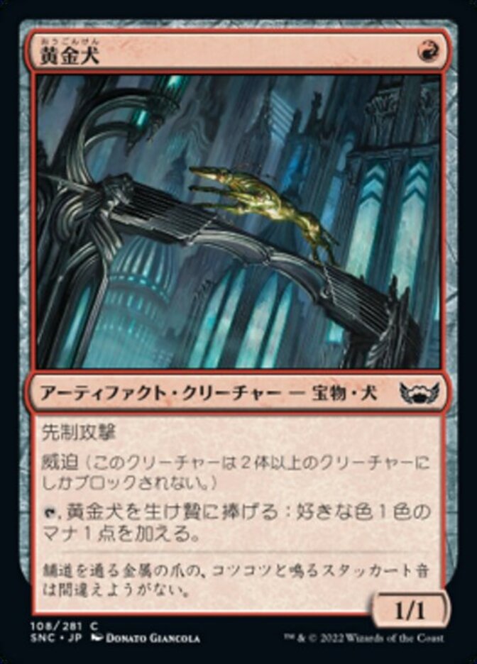 | Rules | First strike Menace (This creature can't be blocked except by two or more creatures.) , Sacrifice Goldhound: Add one mana of any color. |
