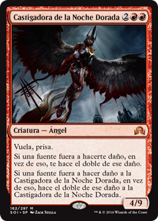 | Rules | Flying, haste If a source would deal damage to you, it deals double that damage to you instead. If a source would deal damage to Goldnight Castigator, it deals double that damage to Goldnight Castigator instead. |