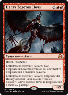 | Rules | Flying, haste If a source would deal damage to you, it deals double that damage to you instead. If a source would deal damage to Goldnight Castigator, it deals double that damage to Goldnight Castigator instead. |
