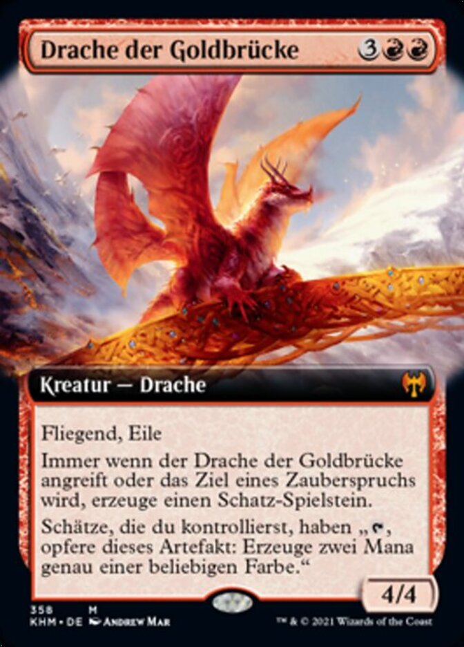 | Rules | Flying, haste Whenever Goldspan Dragon attacks or becomes the target of a spell, create a Treasure token. Treasures you control have ", Sacrifice this artifact: Add two mana of any one color." |