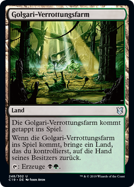 | Rules | Golgari Rot Farm enters the battlefield tapped. When Golgari Rot Farm enters the battlefield, return a land you control to its owner's hand. : Add . |