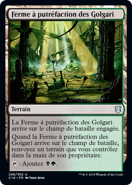 | Rules | Golgari Rot Farm enters the battlefield tapped. When Golgari Rot Farm enters the battlefield, return a land you control to its owner's hand. : Add . |