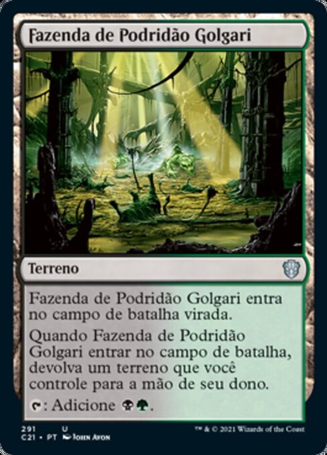 | Rules | Golgari Rot Farm enters the battlefield tapped. When Golgari Rot Farm enters the battlefield, return a land you control to its owner's hand. : Add . |