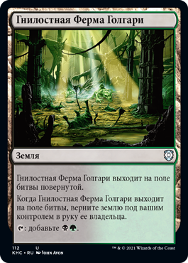 | Rules | Golgari Rot Farm enters the battlefield tapped. When Golgari Rot Farm enters the battlefield, return a land you control to its owner's hand. : Add . |