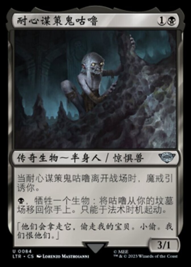 | Rules | When Gollum, Patient Plotter leaves the battlefield, the Ring tempts you. , Sacrifice a creature: Return Gollum from your graveyard to your hand. Activate only as a sorcery. |