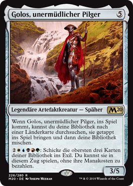 Rules When Golos, Tireless Pilgrim enters the battlefield, you may search your library for a land card, put that card onto the battlefield tapped, then shuffle.