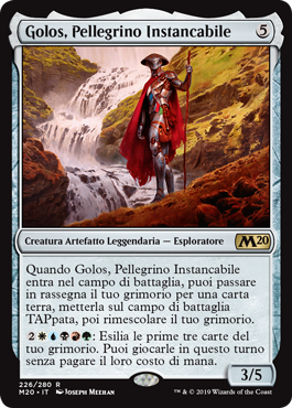 | Rules | When Golos, Tireless Pilgrim enters the battlefield, you may search your library for a land card, put that card onto the battlefield tapped, then shuffle. : Exile the top three cards of your library. You may play them this turn without paying their mana costs. |