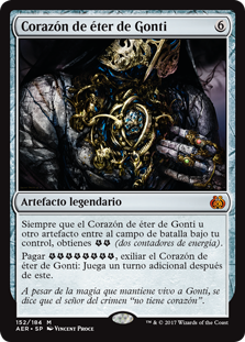 | Rules | Whenever Gonti's Aether Heart or another artifact enters the battlefield under your control, you get (two energy counters). Pay , Exile Gonti's Aether Heart: Take an extra turn after this one. |